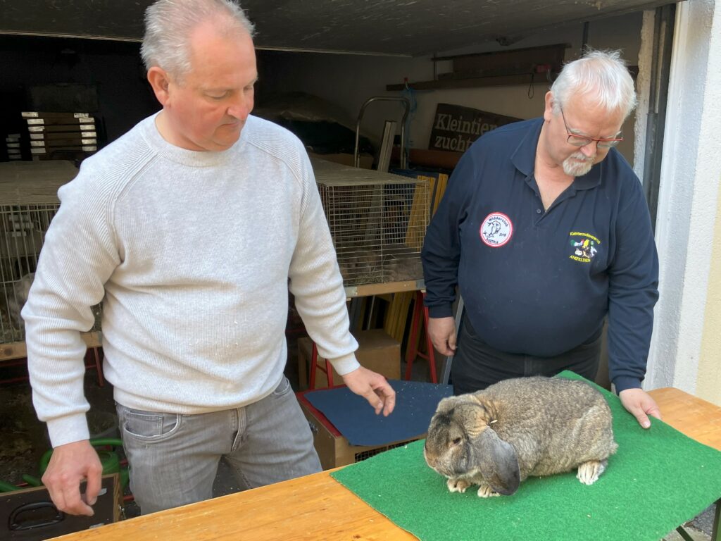 Bei der Tierbesprechung zeigte Melanie Bachl eine vielversprechende junge wildfarbene Zwergwidder-Häsin, Stefan Leitner einen wildfarbenen Widder-Rammler und Reinhard Peirlberger einen rhönfarbigen Zwergwidder.