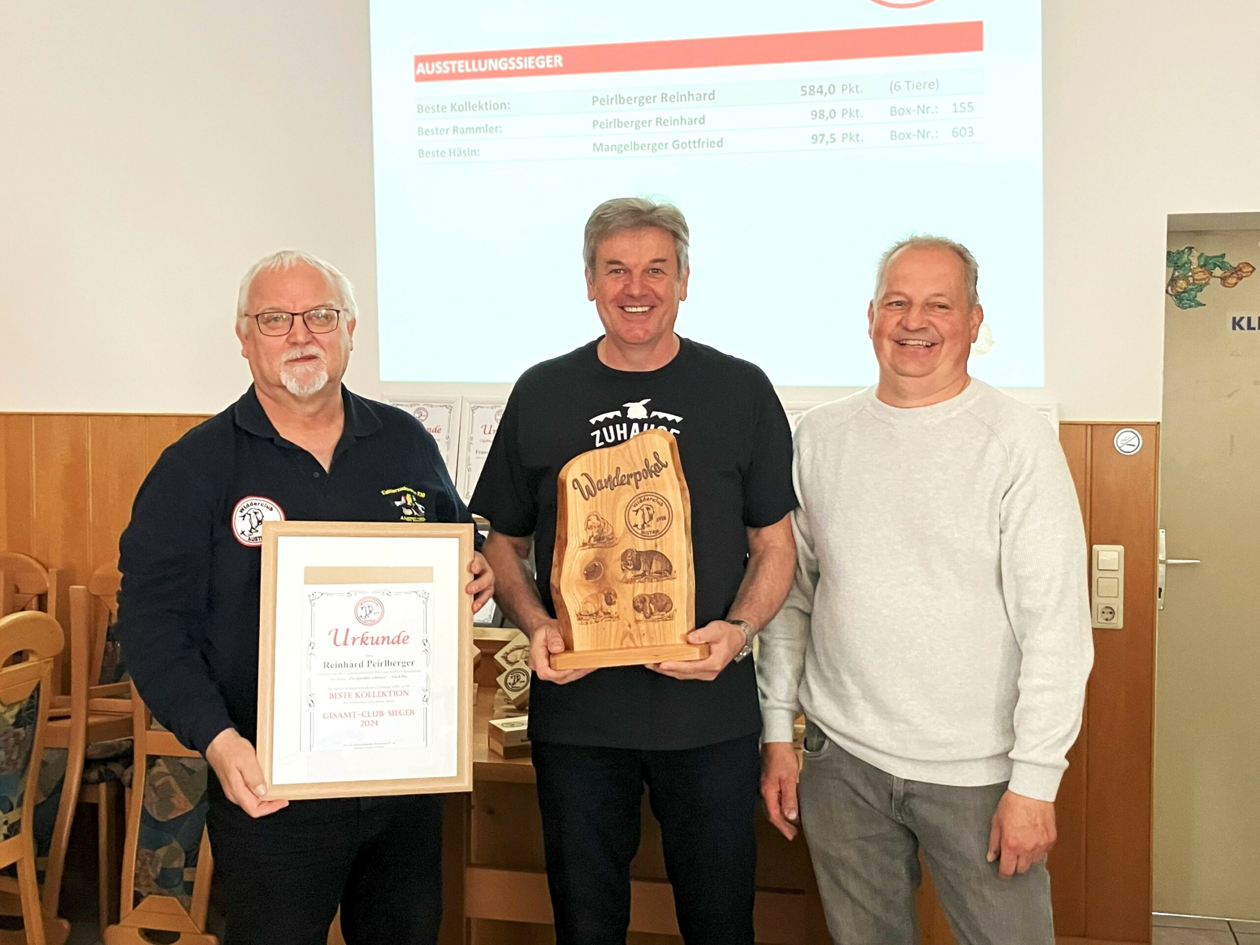 Bei der Jahreshauptversammlung des Österreichischen Widderclubs wurde Reinhard Peirlberger vom E1 für seine Erfolge bei der letzten Clubschau ausgezeichnet. Er wurde mit seinen „Zwergwiddern schwarz“ in Ried Club-Gesamtsieger, Clubmeister und stellte den Champion, der mit 98,0 Pkt. auch der „Beste Rammler der Schau“ war.